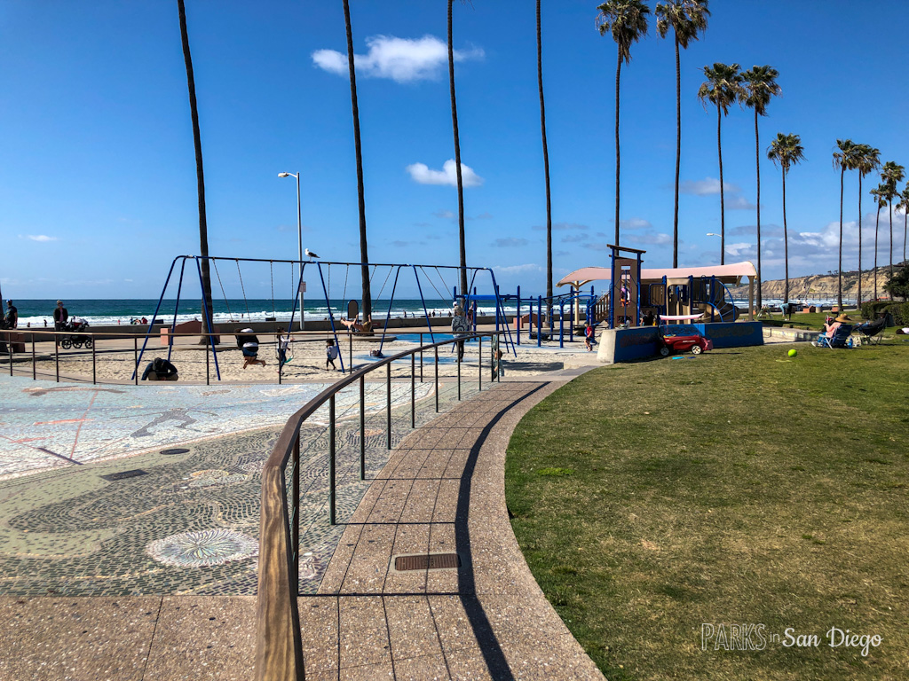 Kellogg Park in La Jolla Shores is an incredible beach-side playground and picnic area. It has parking (which can be limited on the weekends!) and restrooms nearby, making it a great spot for a party, for tourists or for just a day at the park!