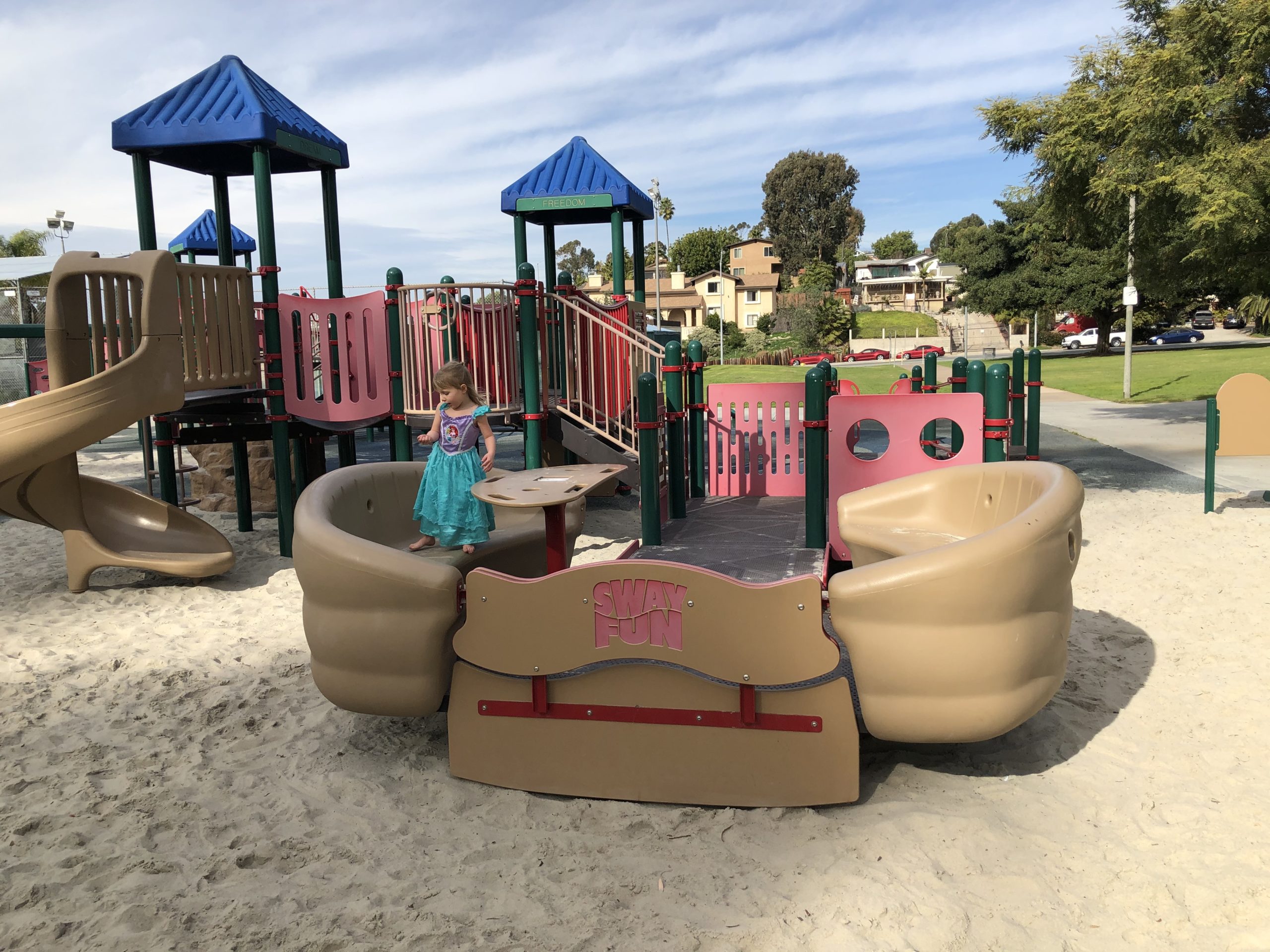 Martin Luther King, Jr. Park in Oceanside has a playground, a tot lot and swings. It features a walking-hiking trail, a large grassy area, ball fields, soccer field, a skate park, and roller hockey field. It has restrooms, lots of parking and a really nice gazebo!